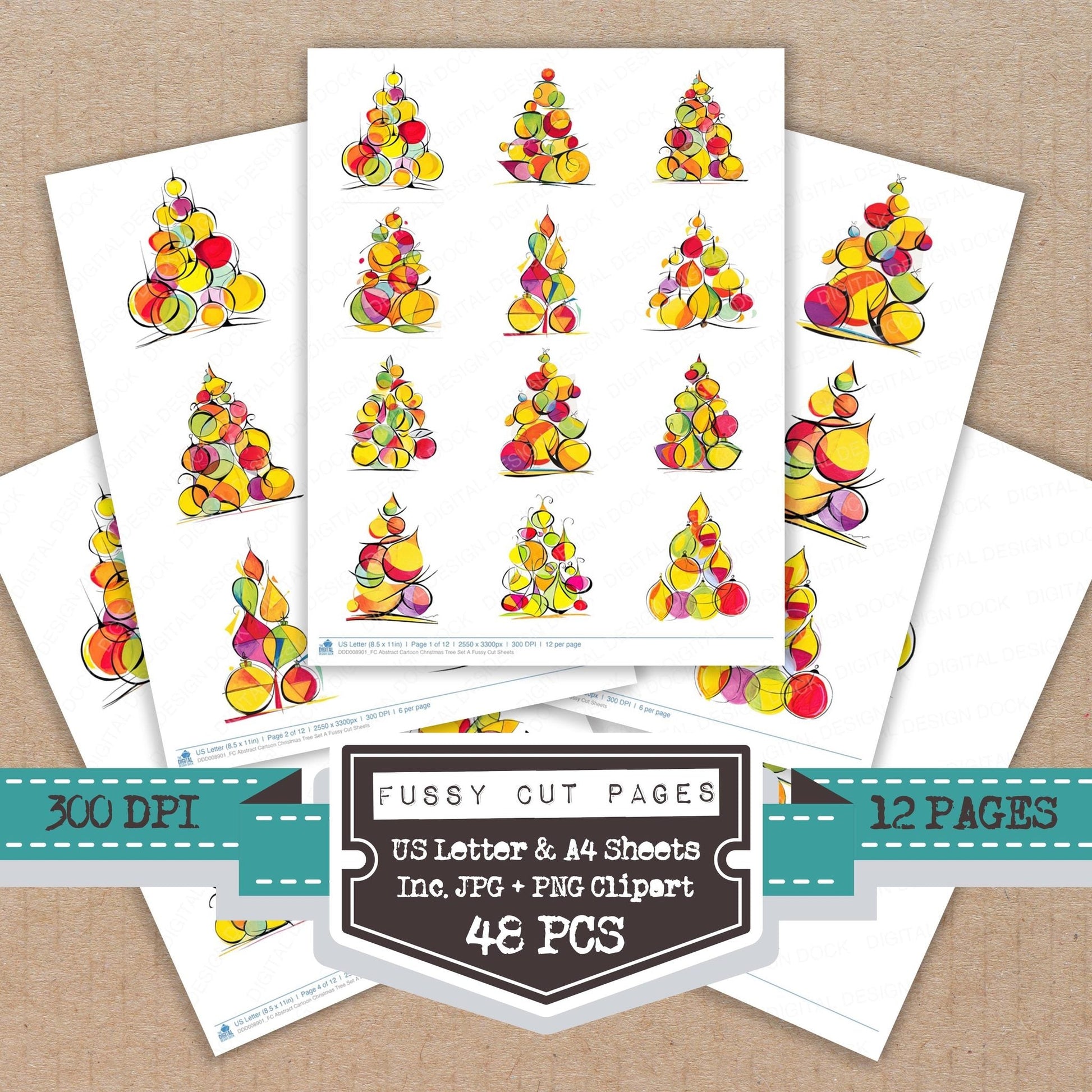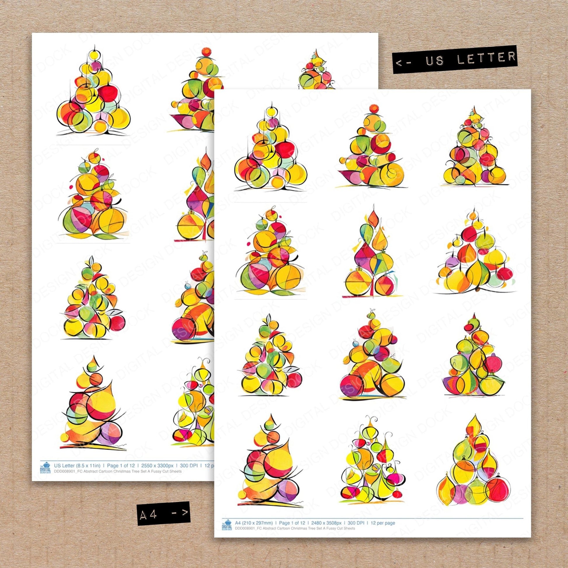 Abstract Cartoon Christmas Tree Set A Fussy Cut Sheets
