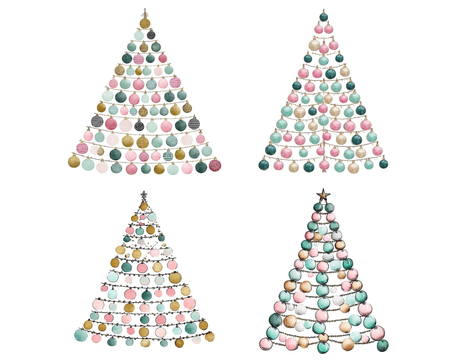 A high quality clipart set featuring Abstract Garland Christmas Tree elements. Perfect for junk journals, scrapbooking, card making, planners, digital design projects, printables, and creative craft work.