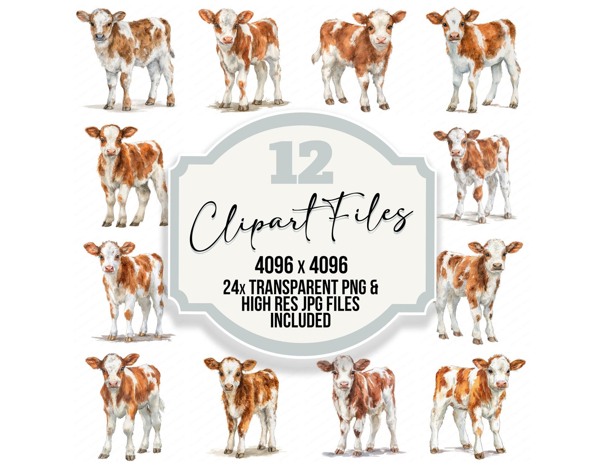 A high quality clipart set featuring Cute Little Calf elements. Perfect for junk journals, scrapbooking, card making, planners, digital design projects, printables, and creative craft work.