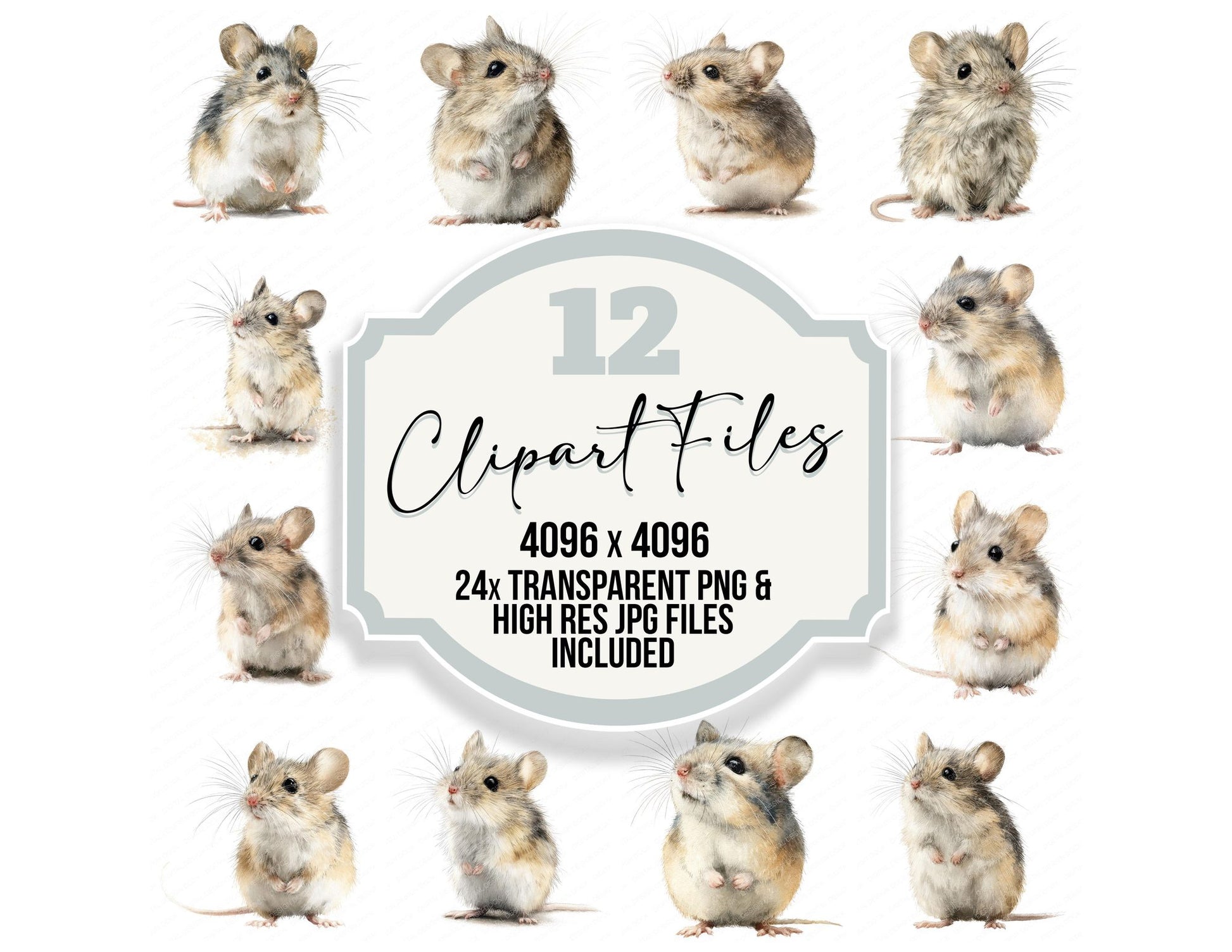 A high quality clipart set featuring Cute Little Field Mouse elements. Perfect for junk journals, scrapbooking, card making, planners, digital design projects, printables, and creative craft work.