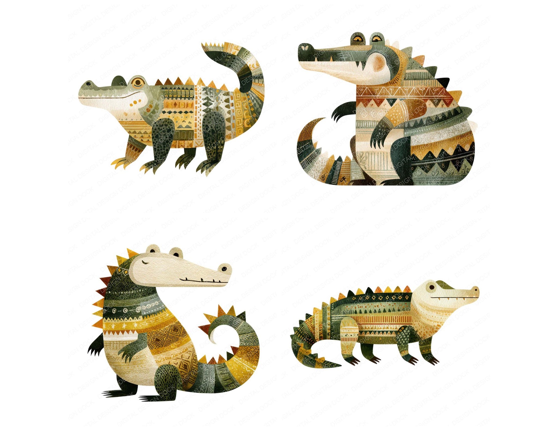Folk Art Crocodile Clipart Set (DDD008252)