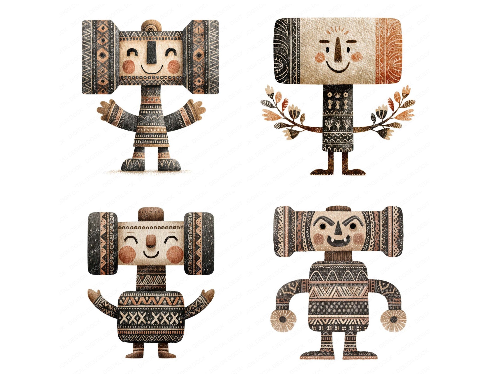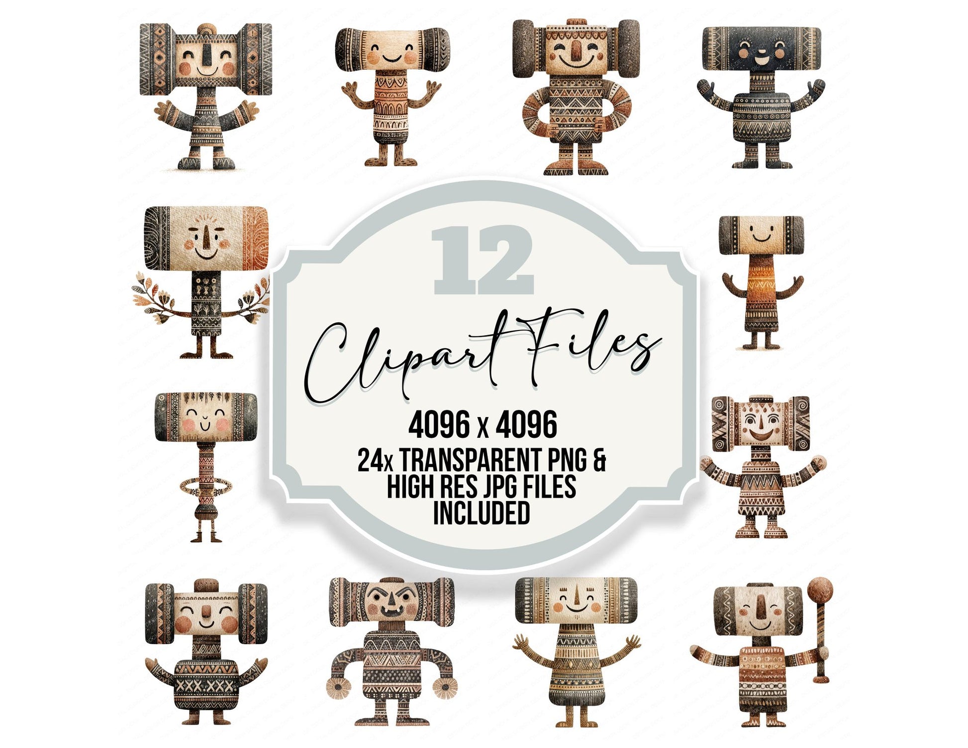 A high quality clipart set featuring Folk Art Hammer Character elements. Perfect for junk journals, scrapbooking, card making, planners, digital design projects, printables, and creative craft work.