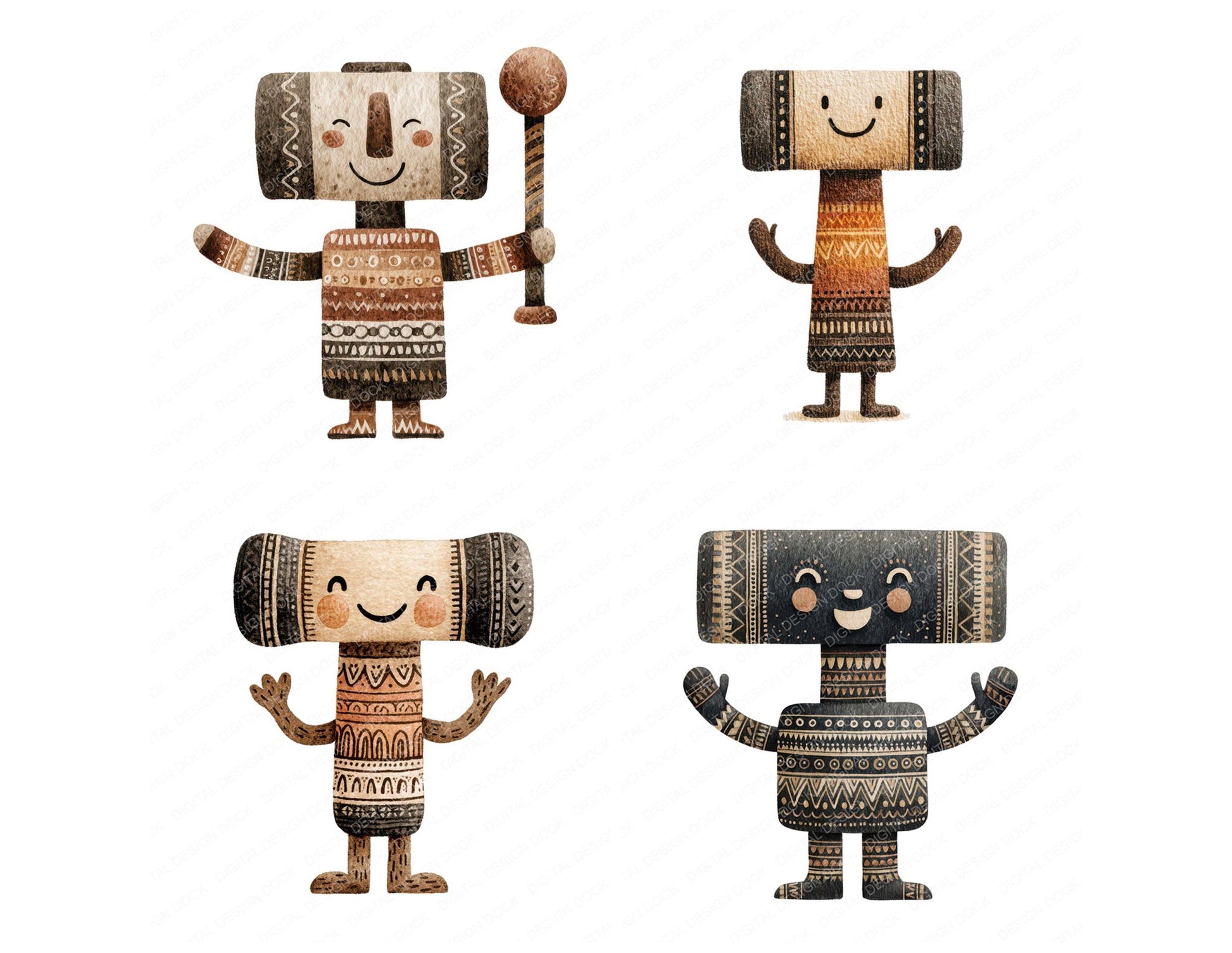 Folk Art Hammer Character Clipart Set