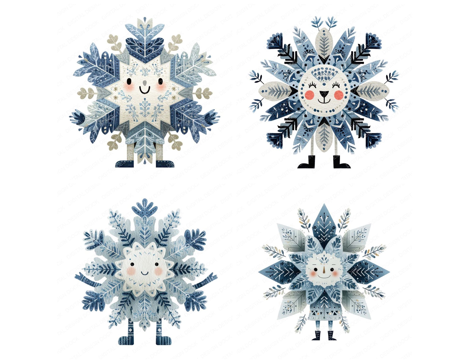 Folk Art Snowflake Character Clipart Set (DDD008482)