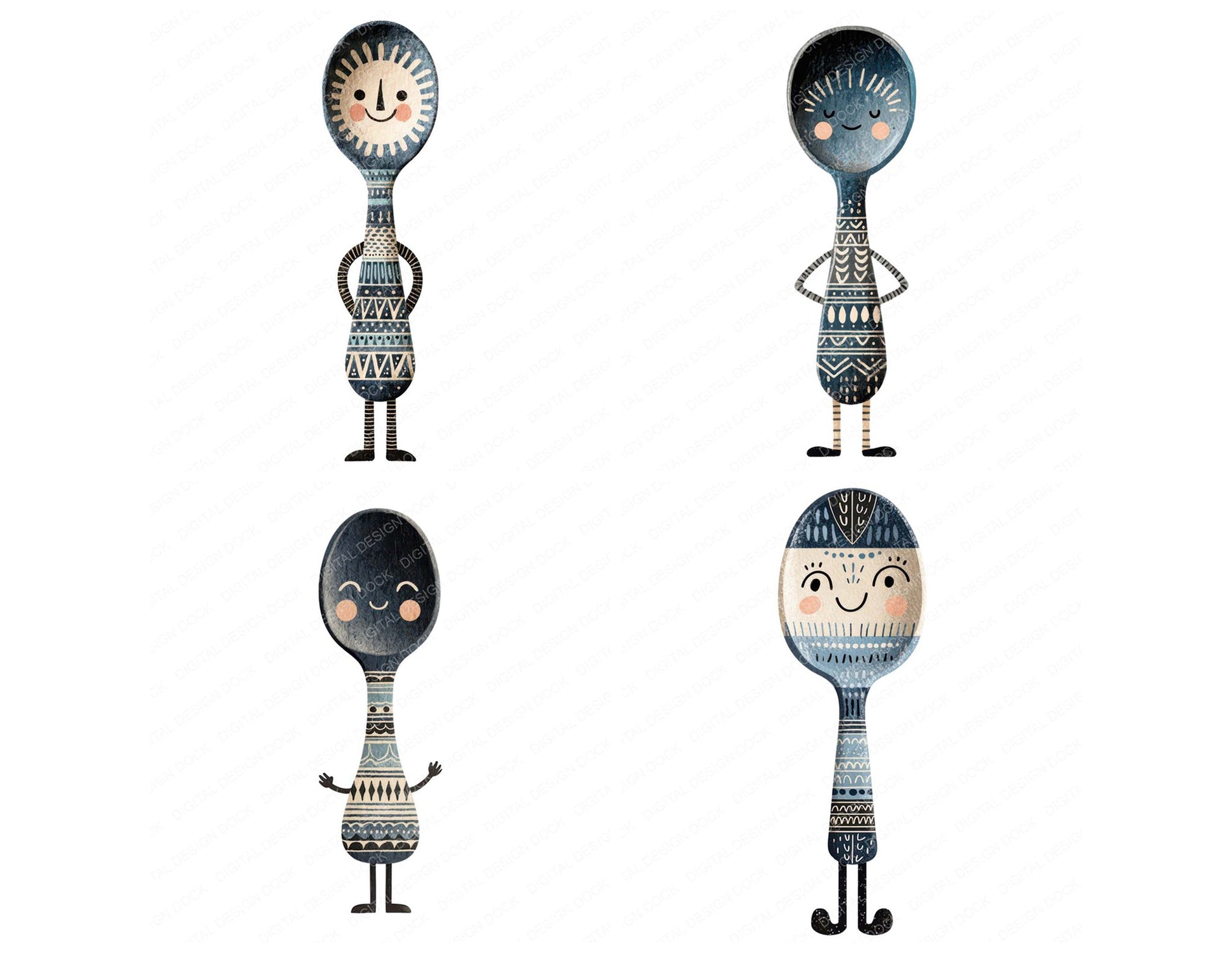 Folk Art Spoon Character Clipart Set (DDD008463)