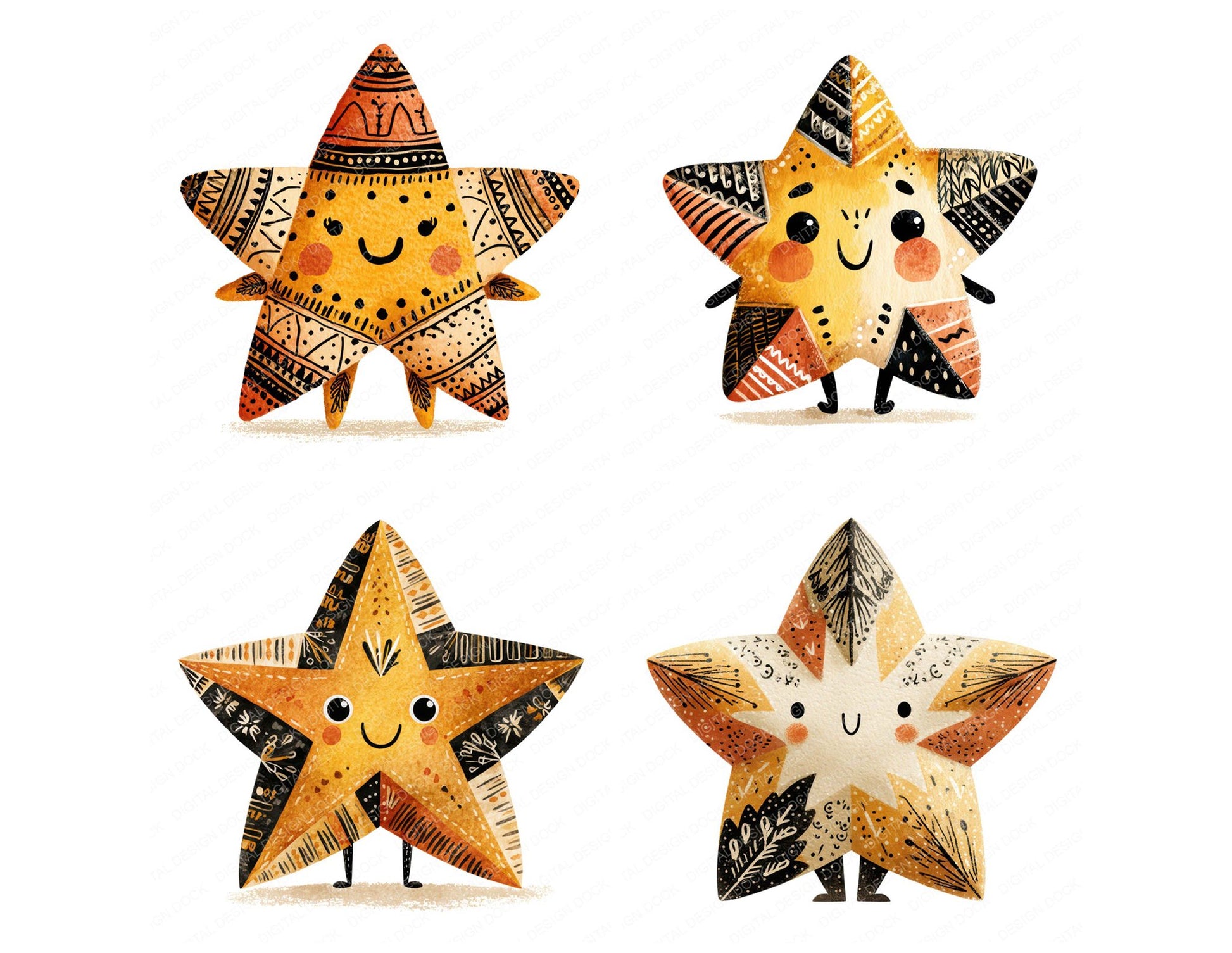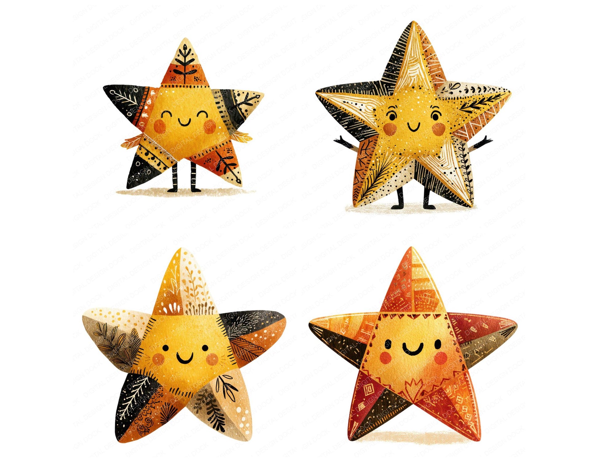 Folk Art Star Character Clipart Set
