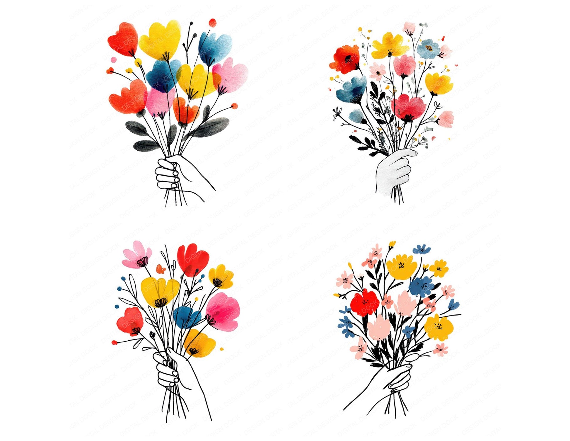 Hand Held Wildflower Bouquet Clipart Set (DDD008689)