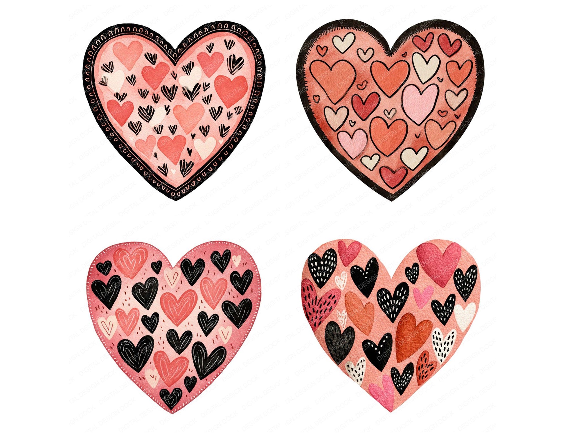 A high quality clipart set featuring Minimal Patterned Heart elements. Perfect for junk journals, scrapbooking, card making, planners, digital design projects, printables, and creative craft work.
