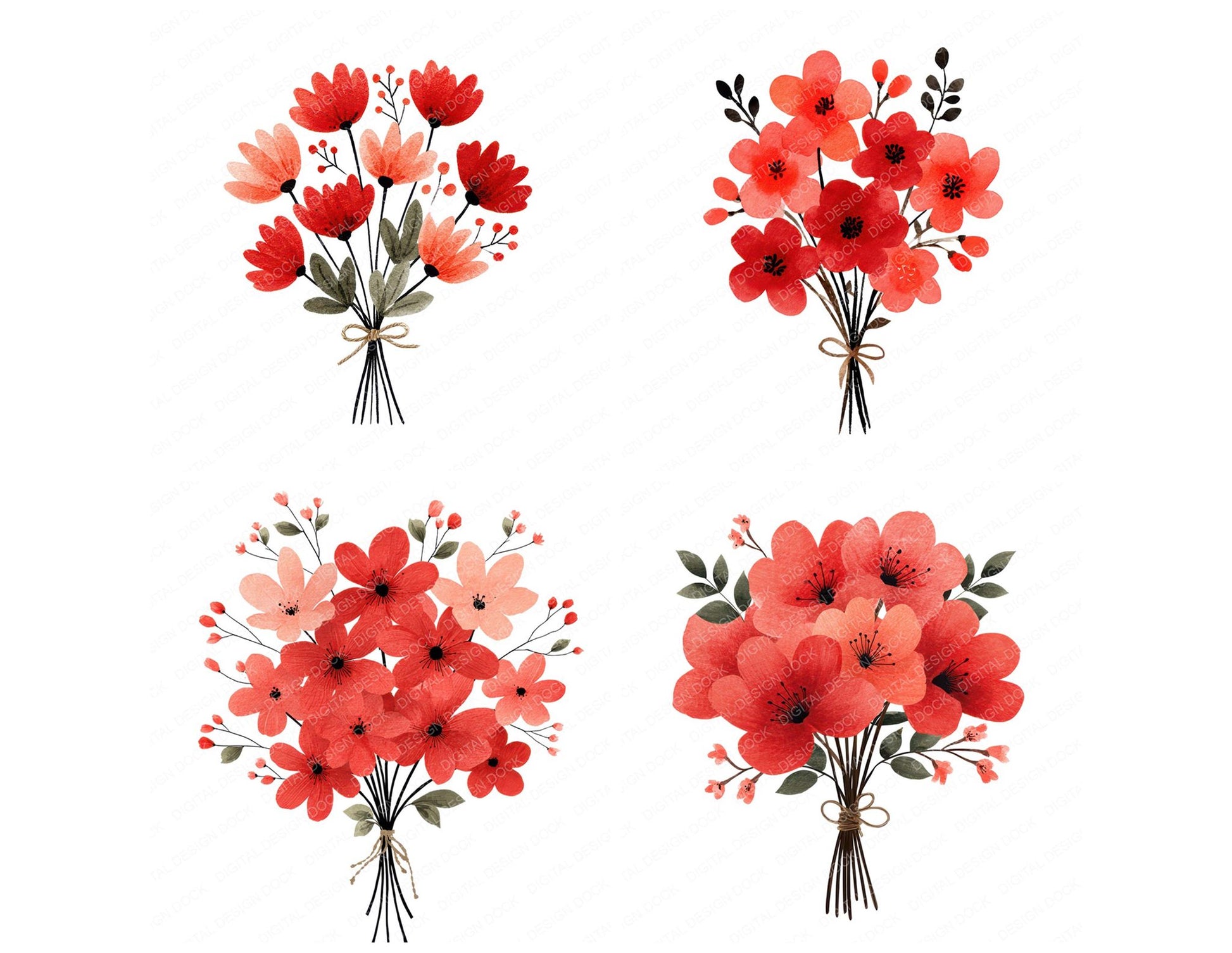 Minimal Red Flower Bouquet Clipart Set (DDD008692)