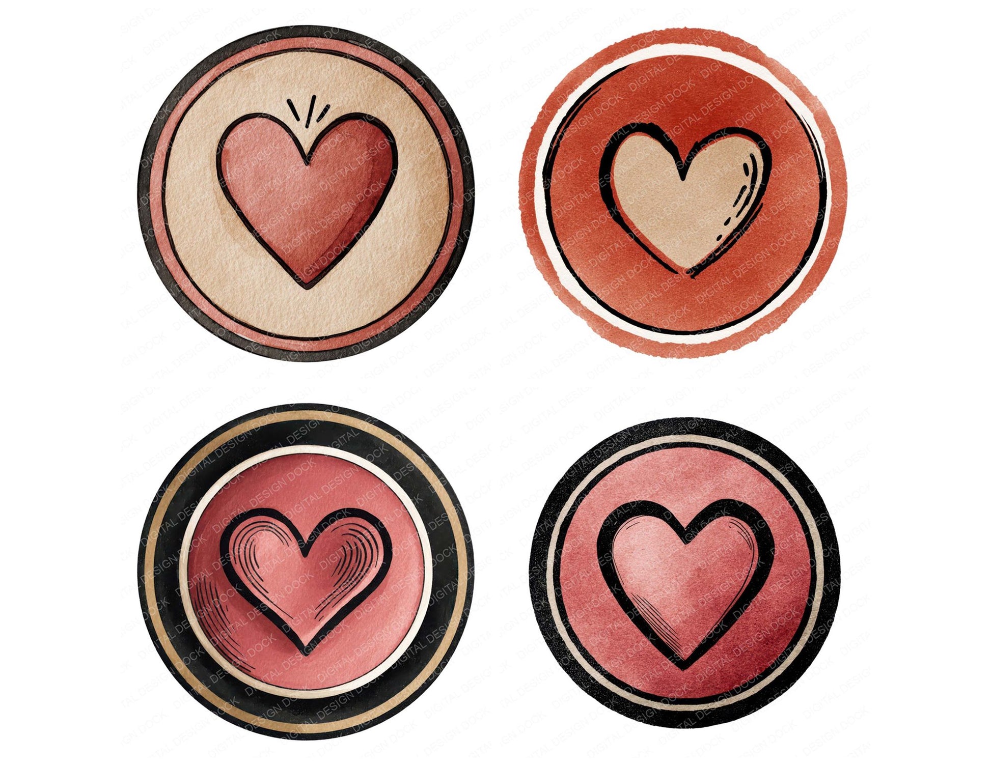 A high quality clipart set featuring Minimal Solid Heart Circle elements. Perfect for junk journals, scrapbooking, card making, planners, digital design projects, printables, and creative craft work.