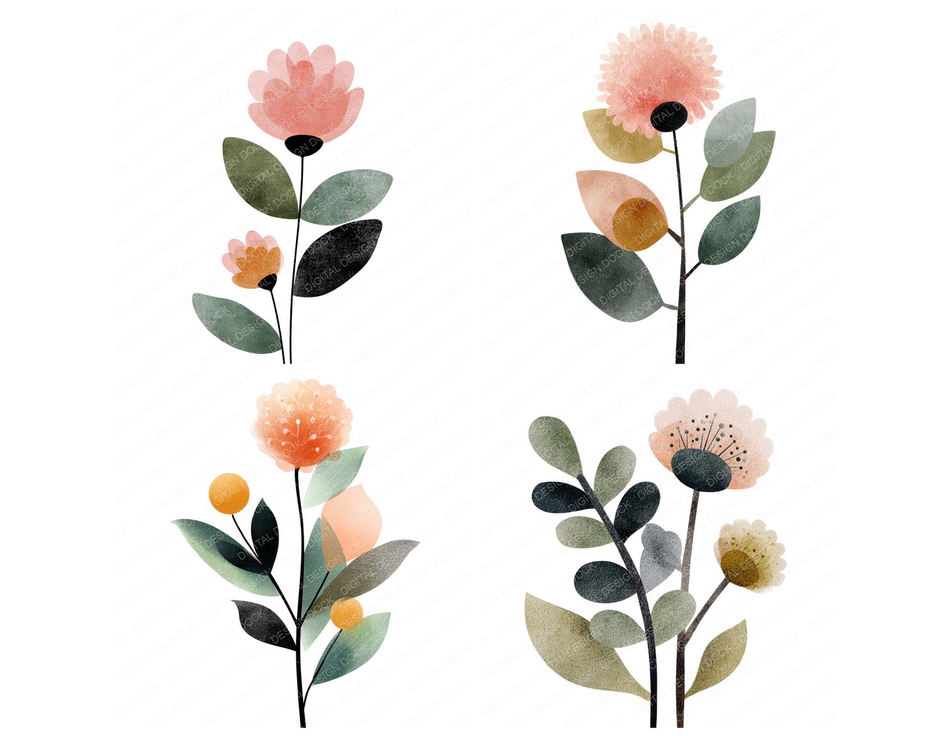 A high quality clipart set featuring Minimal Wildflower Stem elements. Perfect for junk journals, scrapbooking, card making, planners, digital design projects, printables, and creative craft work.