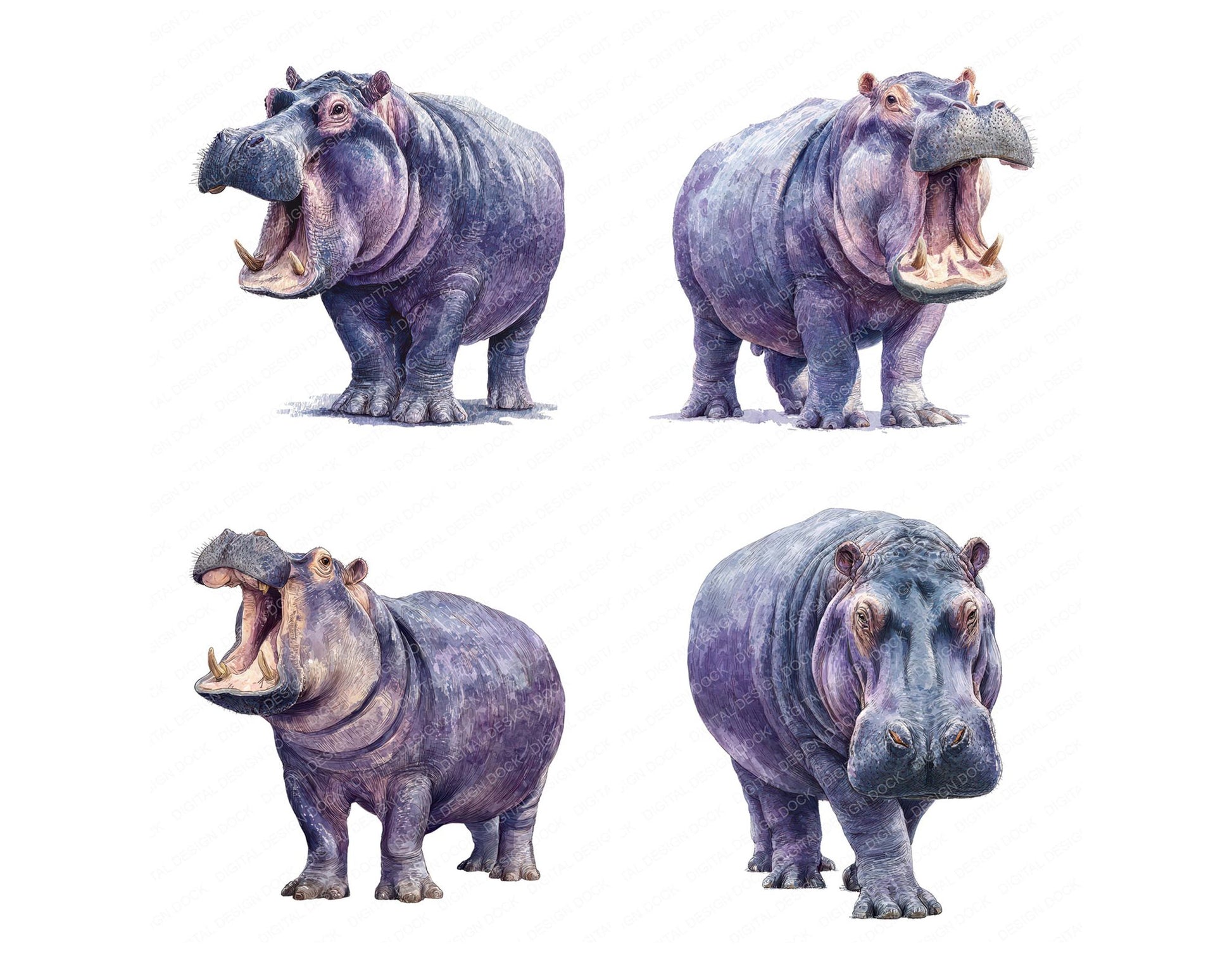 Realistic Hippo Illustration Clipart Set (DDD008854)