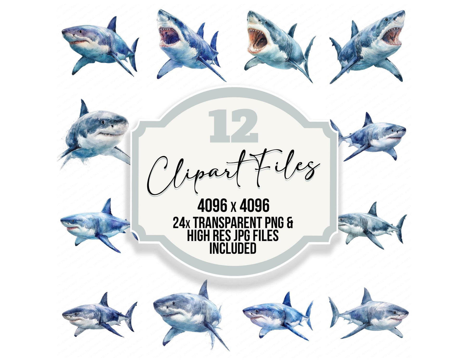 A high quality clipart set featuring Realistic Shark Illustration elements. Perfect for junk journals, scrapbooking, card making, planners, digital design projects, printables, and creative craft work.