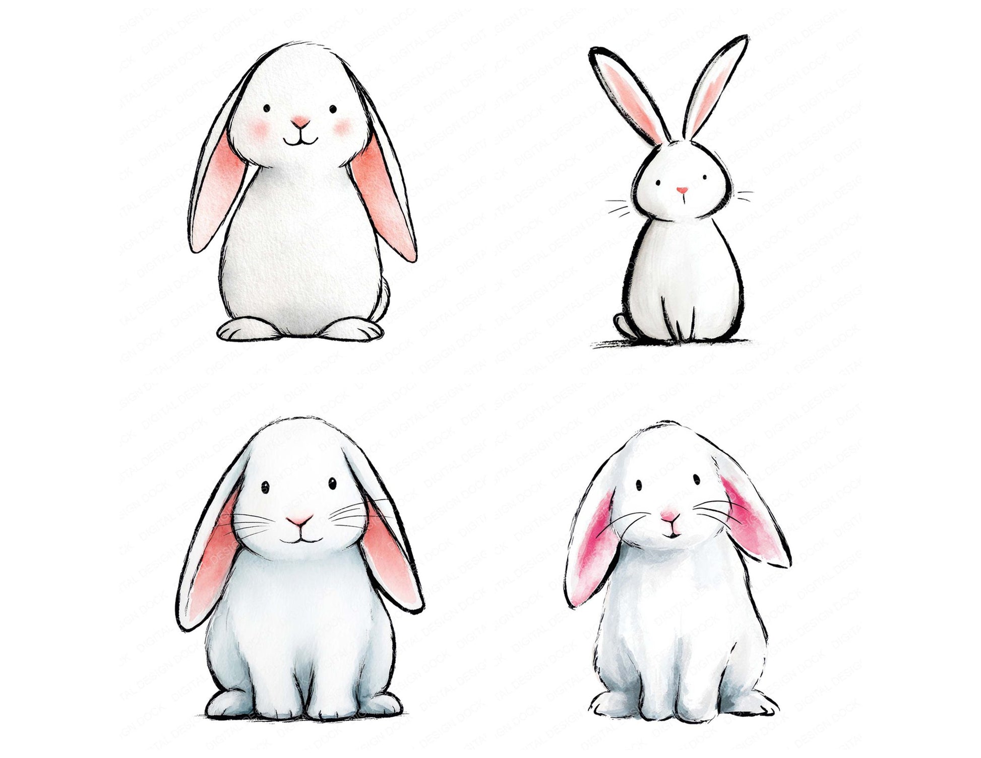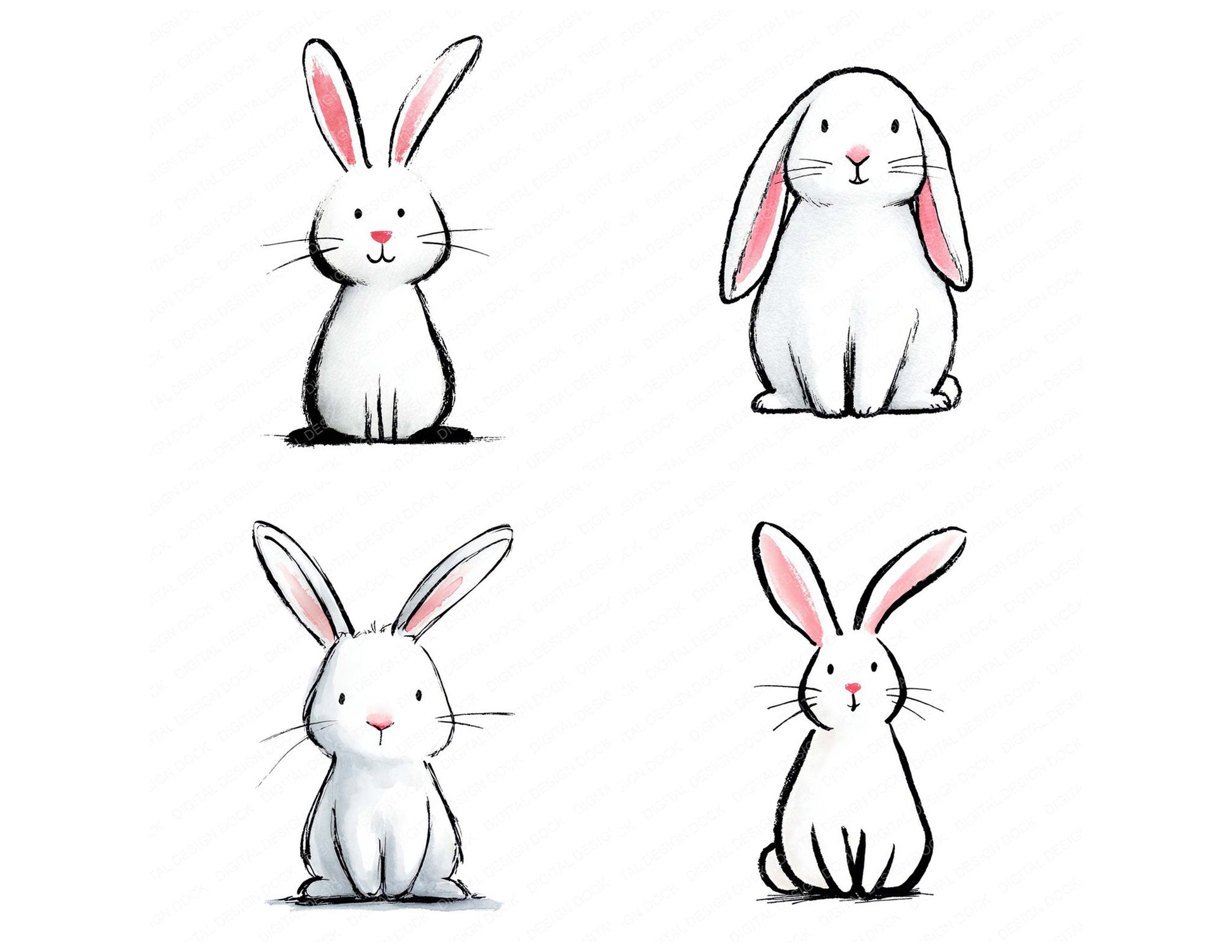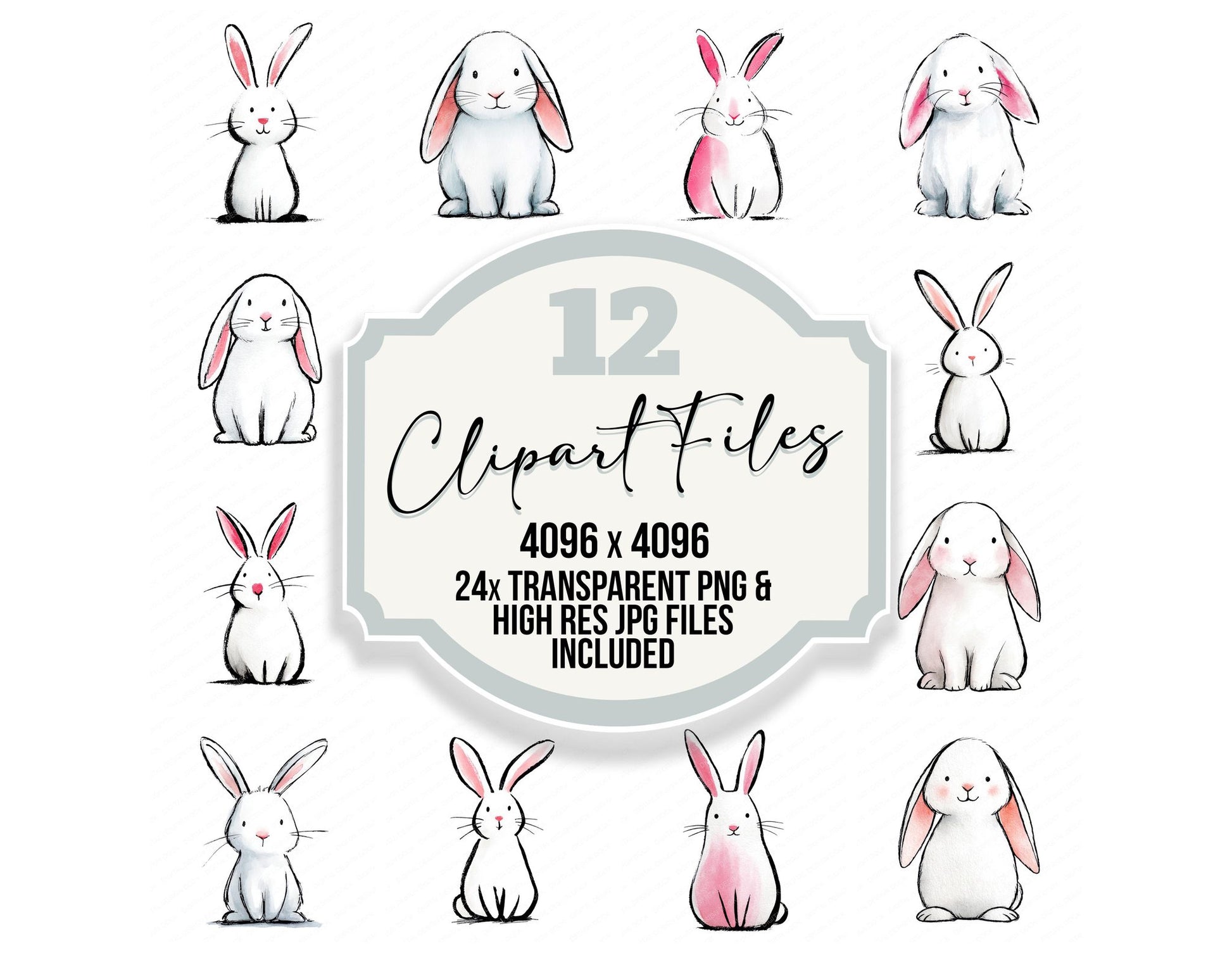A high quality clipart set featuring Simple Minimal Bunny Illustration elements. Perfect for junk journals, scrapbooking, card making, planners, digital design projects, printables, and creative craft work.