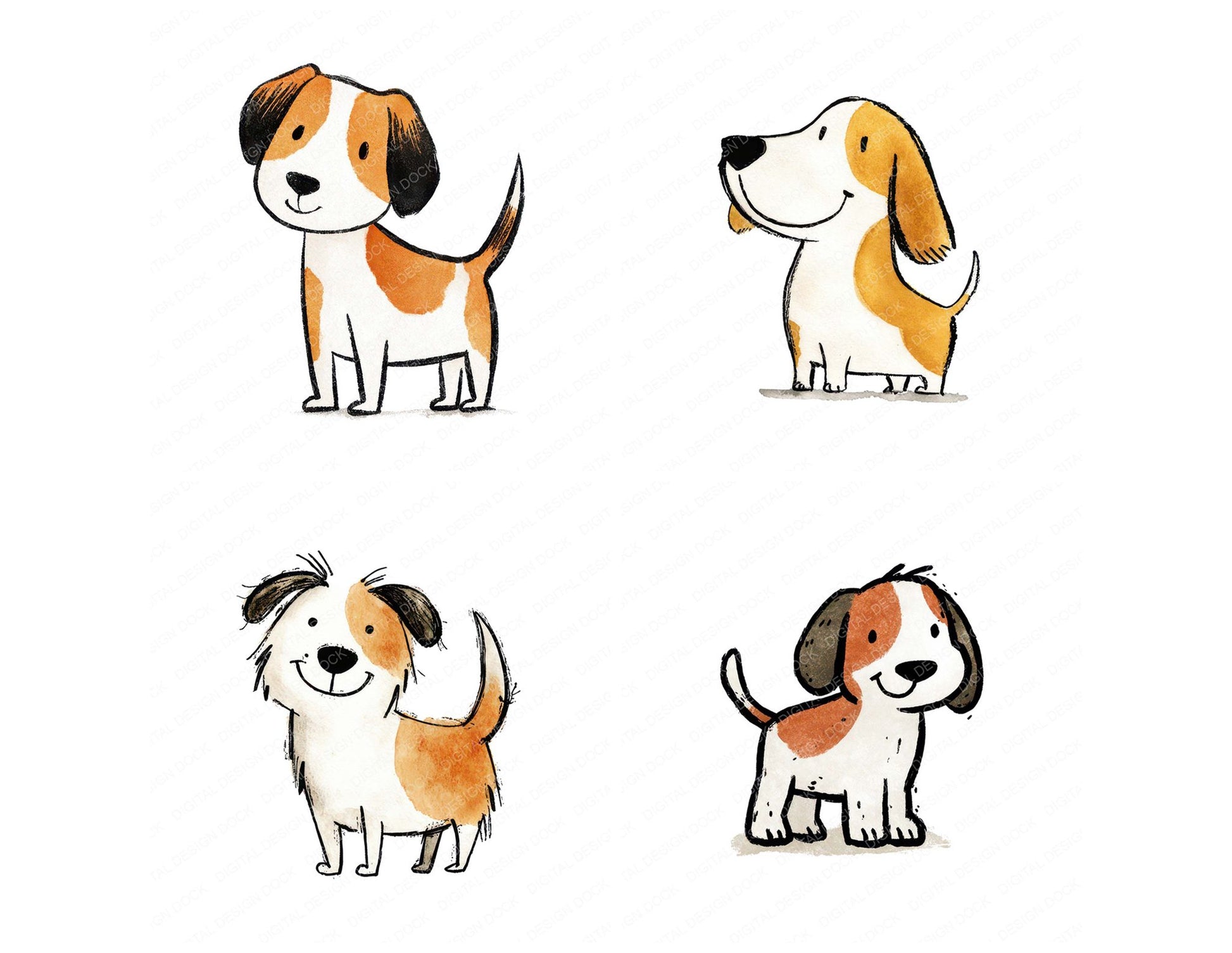 Simple Minimal Dog Illustration Clipart Set (DDD008752)