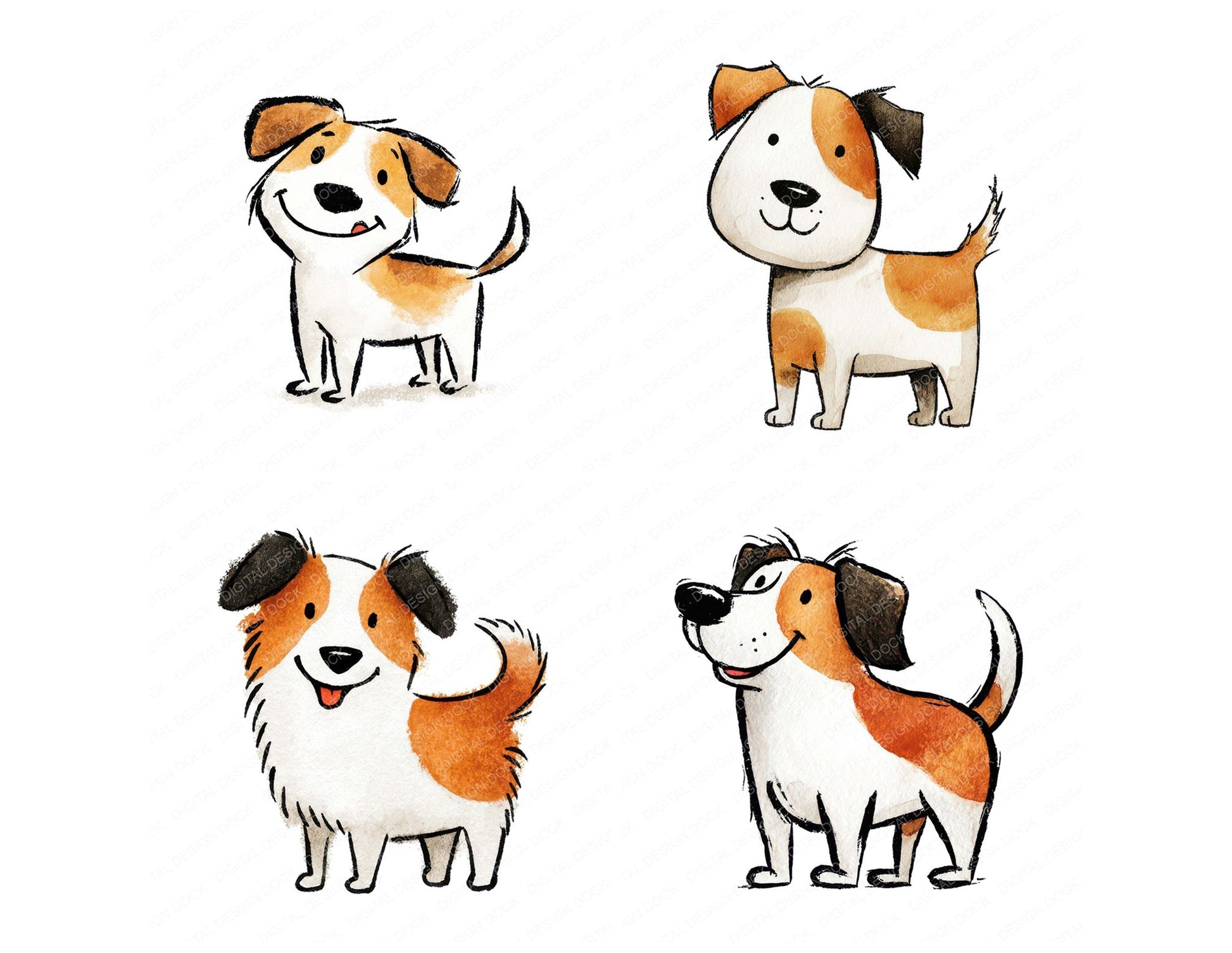 A high quality clipart set featuring Simple Minimal Dog Illustration elements. Perfect for junk journals, scrapbooking, card making, planners, digital design projects, printables, and creative craft work.
