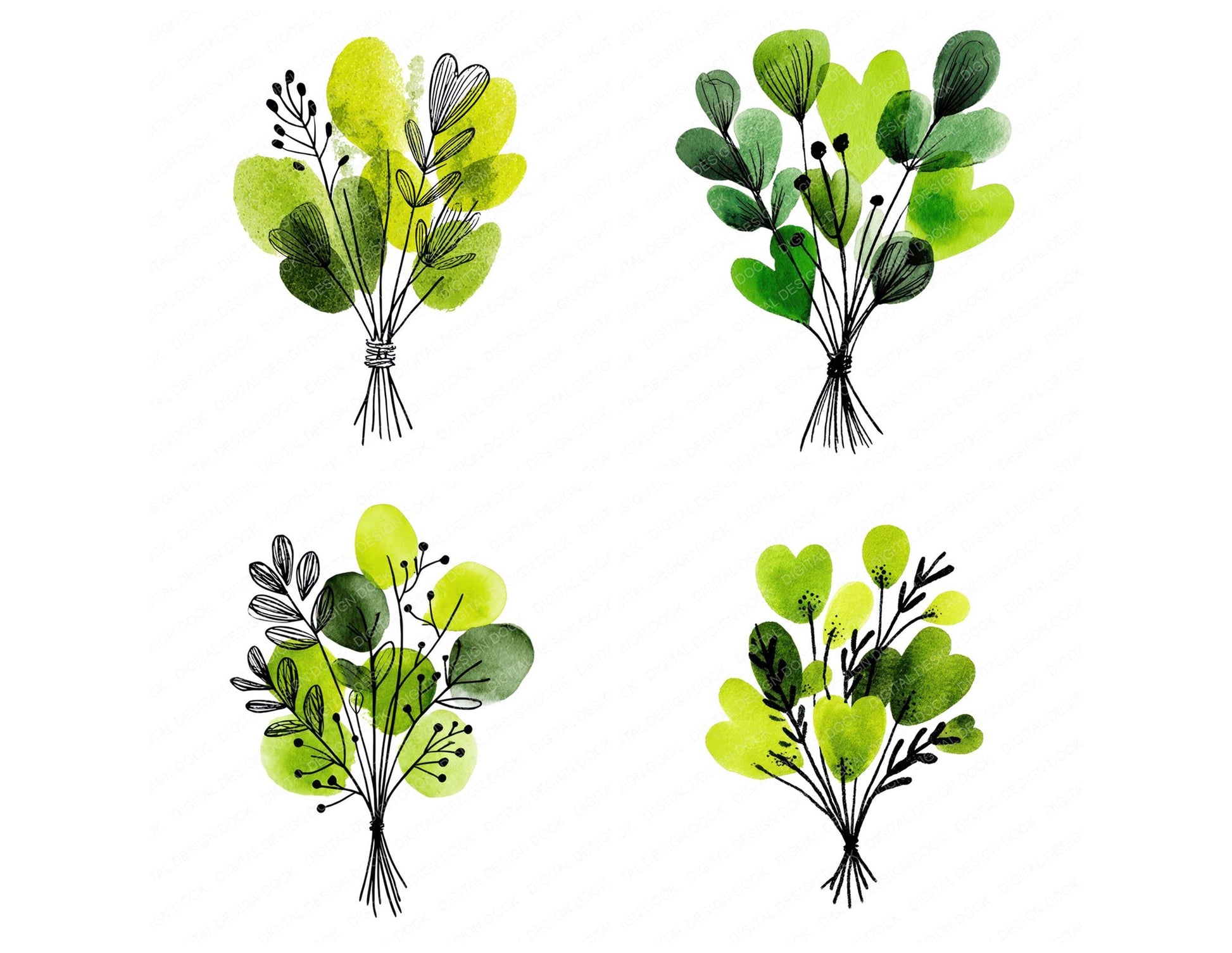 Simple Minimal Herb Bundle Illustration Clipart Set (DDD008700)