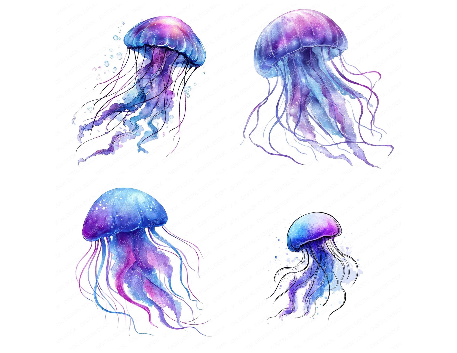 A high quality clipart set featuring Simple Minimal Jellyfish Illustration elements. Perfect for junk journals, scrapbooking, card making, planners, digital design projects, printables, and creative craft work.