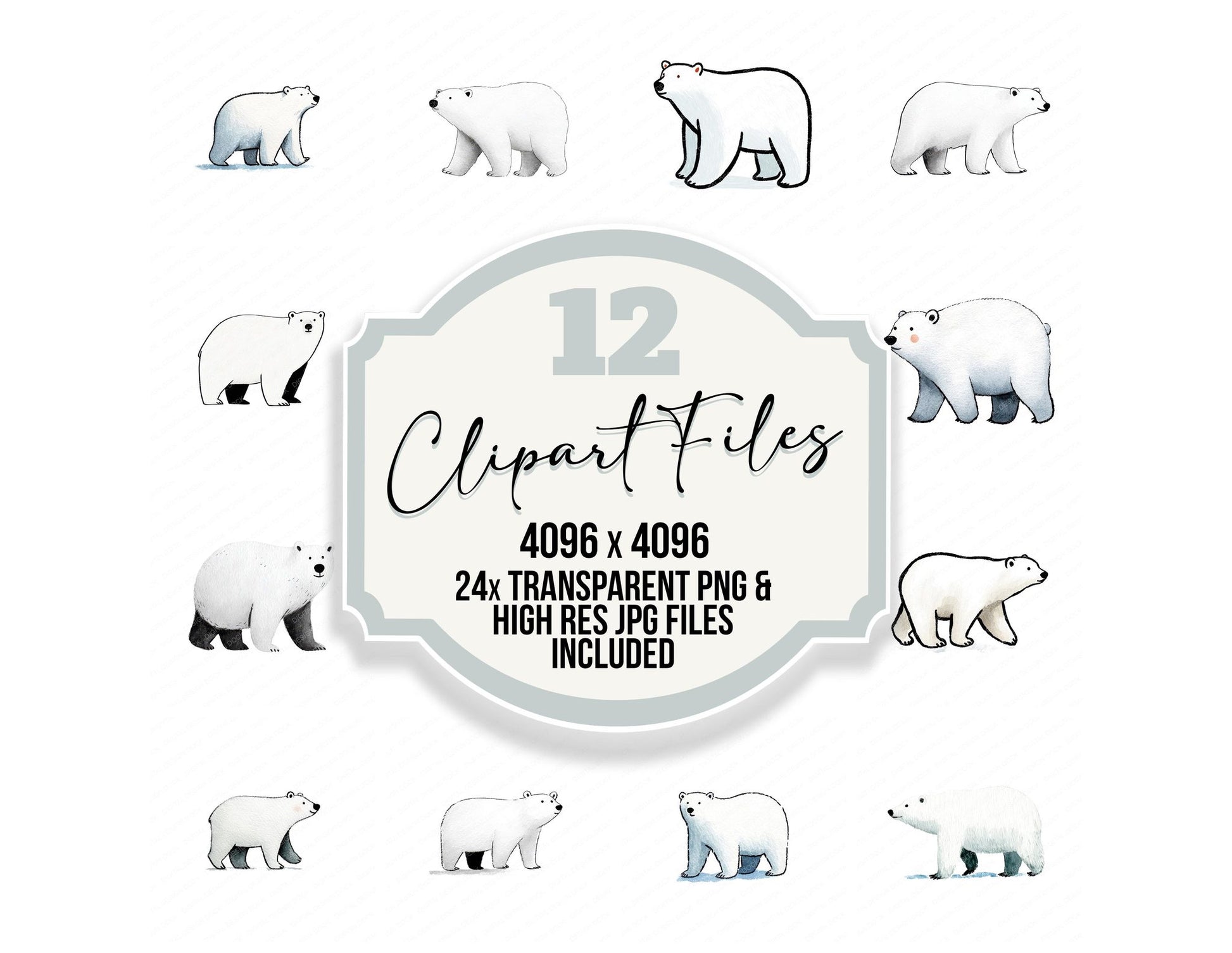 A high quality clipart set featuring Simple Minimal Polar Bear Illustration elements. Perfect for junk journals, scrapbooking, card making, planners, digital design projects, printables, and creative craft work.