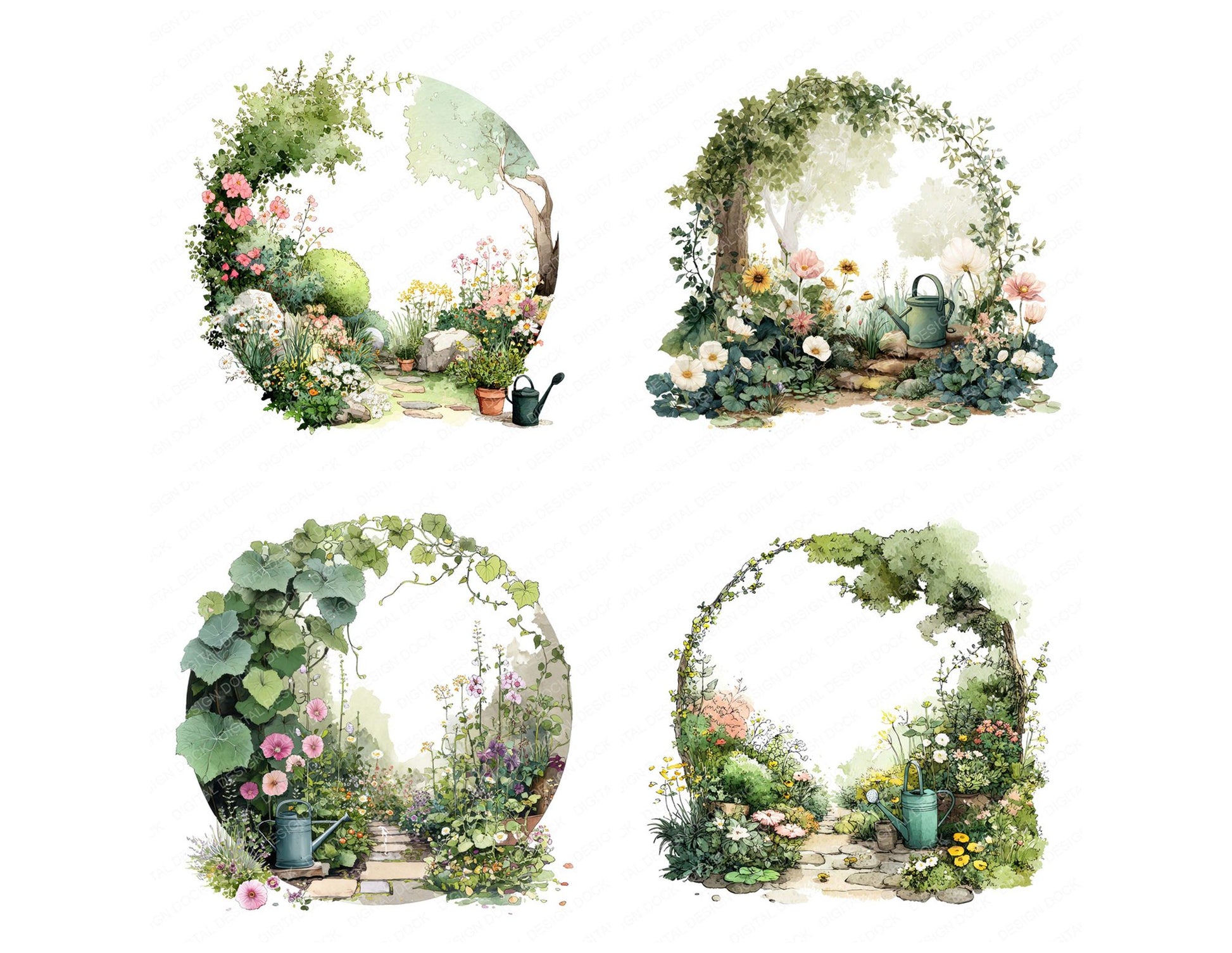 Watercolour Garden Circle Clipart Set (DDD008705)