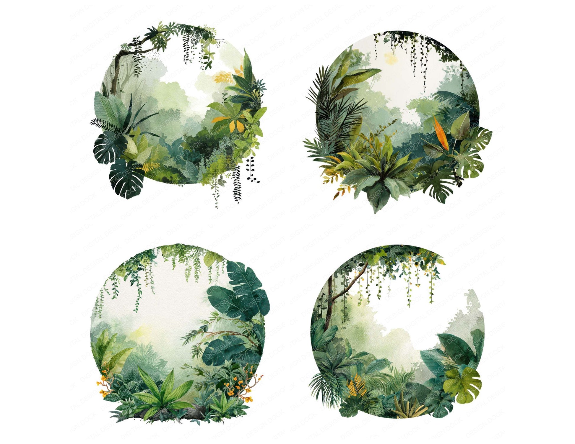 Watercolour Jungle Circle Clipart Set (DDD008540)