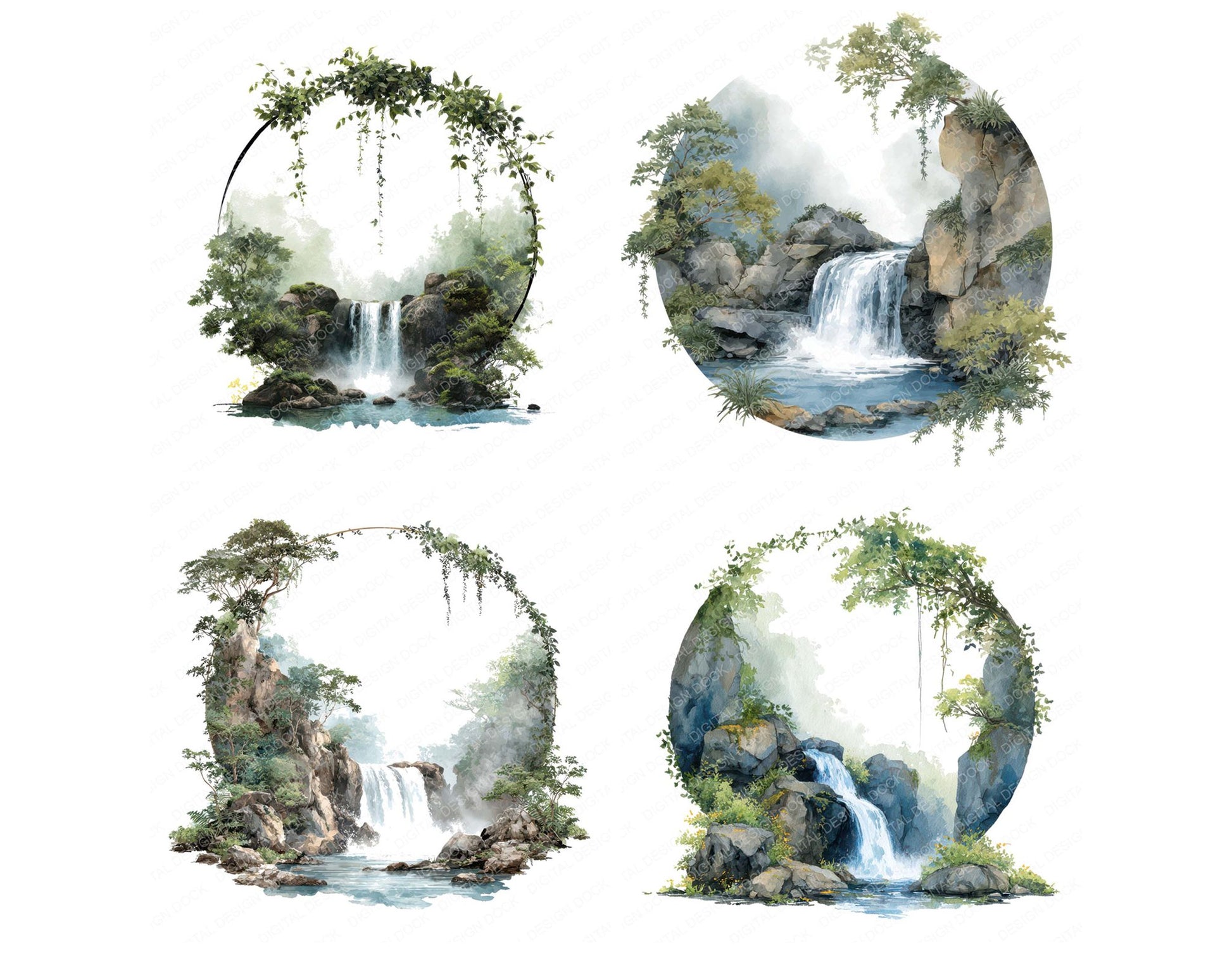 Watercolour Waterfall Circle Clipart Set (DDD008706)