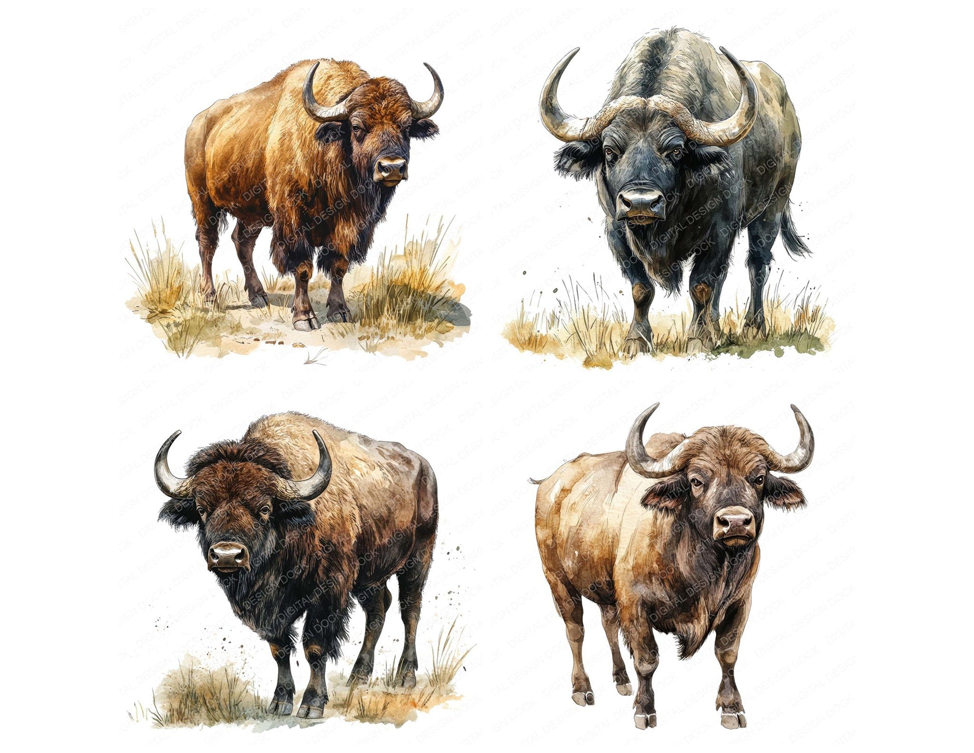 A high quality clipart set featuring Working Buffalo elements. Perfect for junk journals, scrapbooking, card making, planners, digital design projects, printables, and creative craft work.